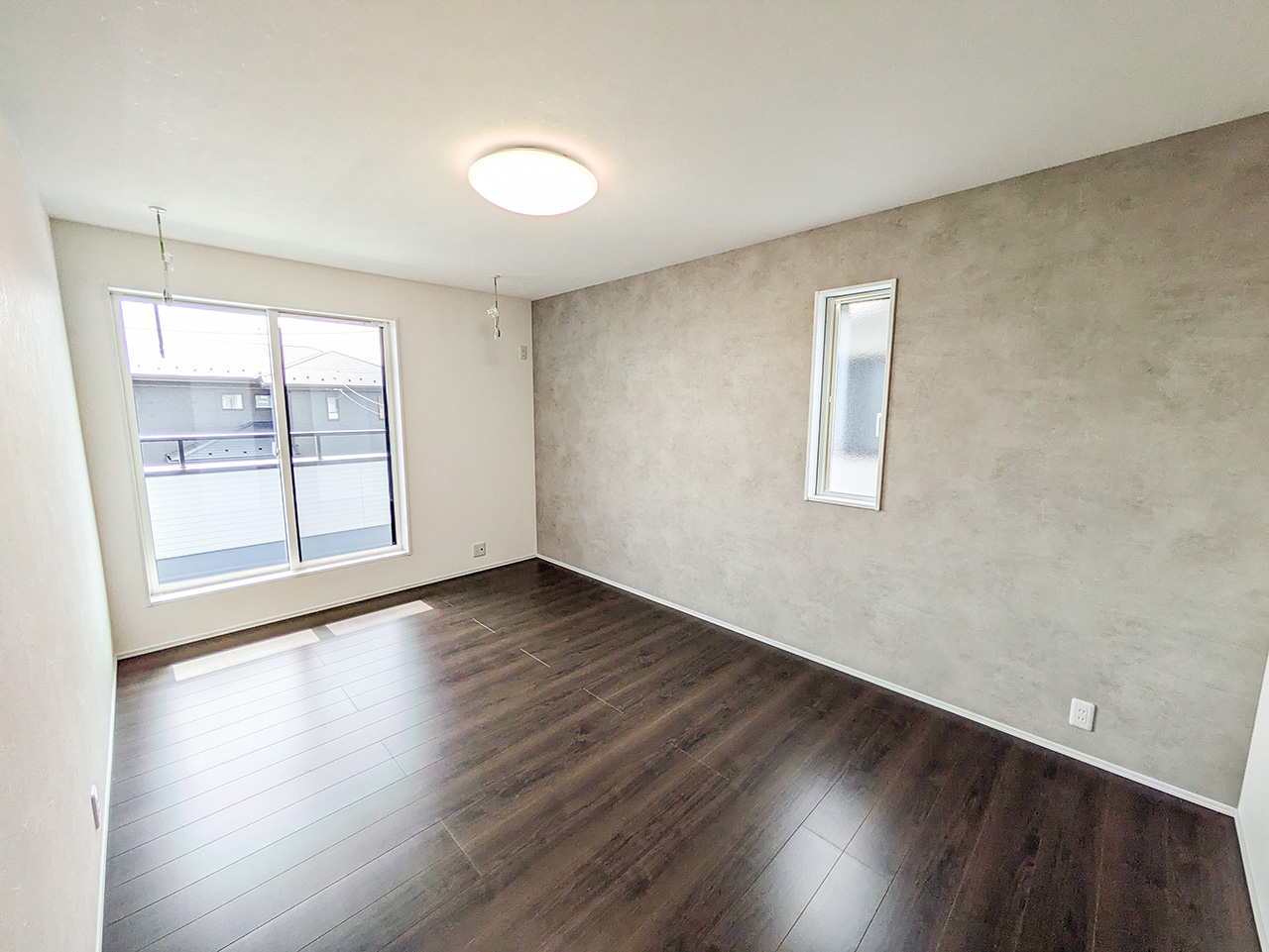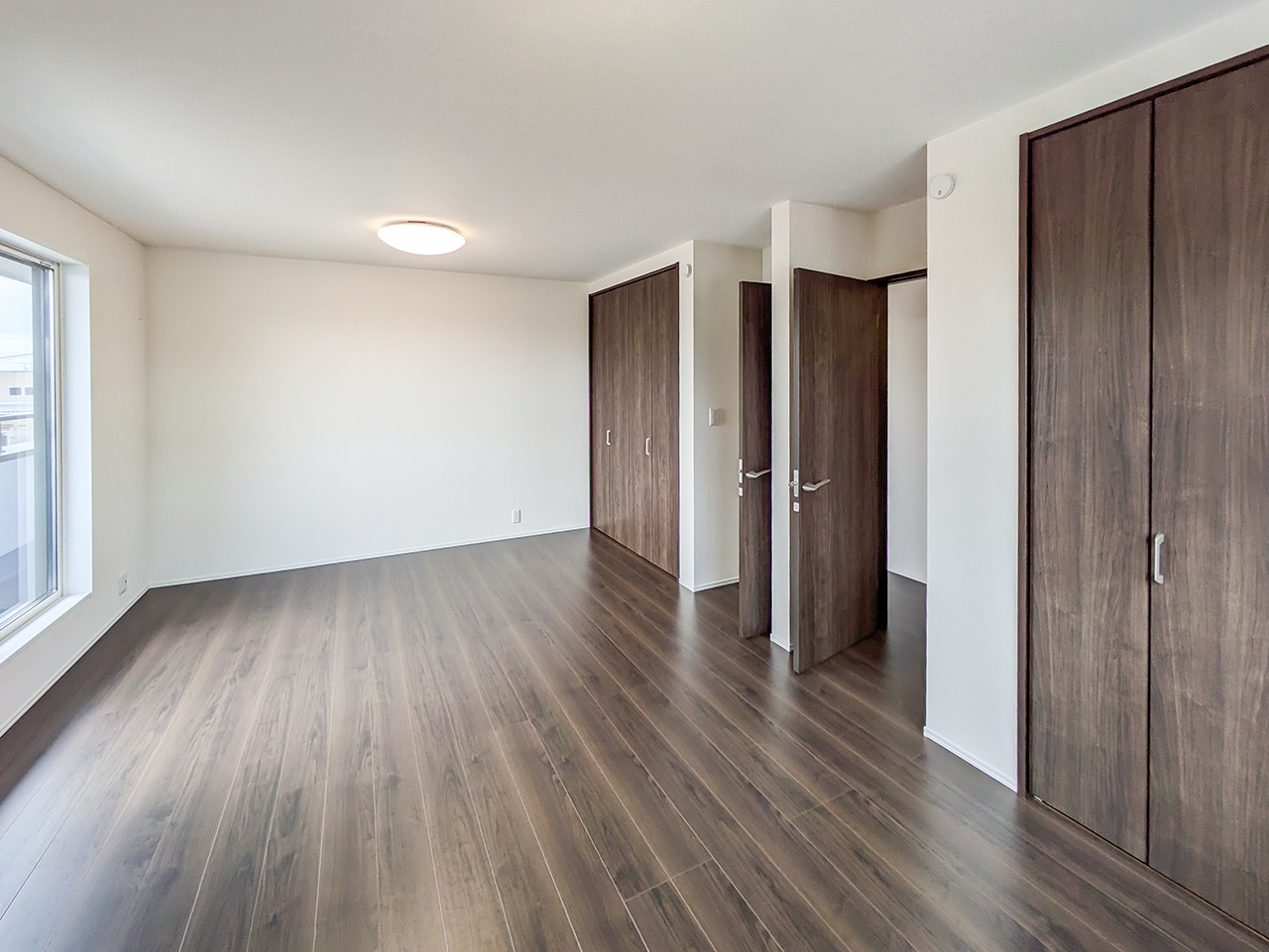 2つの空間に間仕切り可能な、広々とした2階2ドア1ルーム。子供が生まれる前、赤ちゃんが生まれてから、そして大きくなって個室を持つようになるまで対応。子ども達が独立したら広々としたご夫婦の書斎や趣味の部屋にも。ご家族の成長といっしょに変わっていく自由な家づくりが可能です。※間仕切り壁の設置は有料オプションとなります。