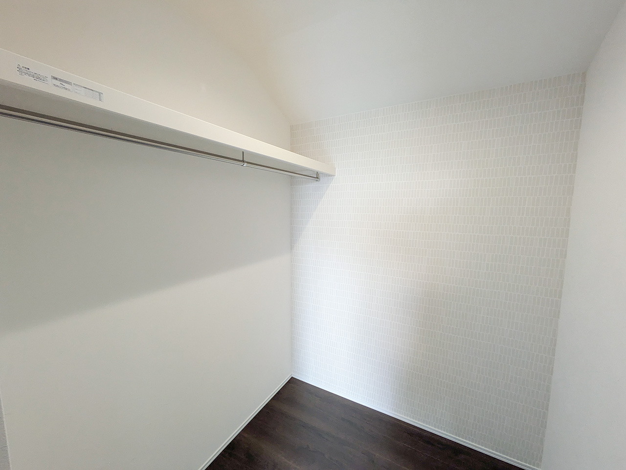 ご夫婦や子ども達の衣類をたっぷりしまえる大容量のウォークインクローゼット。季節の衣類から鞄や帽子などの小物までたっぷり保管可能。ウォークインタイプなので衣類の出し入れや整理整頓もスムーズに行えます。