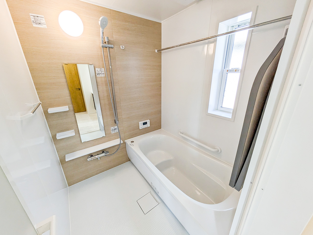 雨の日も気にせず洗濯物が浴室内に干せる浴室換気乾燥暖房機を標準装備。時間も天気も気にせず干せるからとても便利。また、浴室のジメジメした環境から発生するカビも抑えることができます。