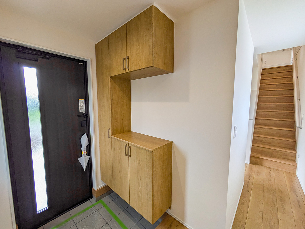 2階建ての住まいに必ず存在する階段。その下の部分は意外と大きな空間が広がっています。その空間を上手に利用した階段下収納。リビングに極力物を置きたくない、1階で使う掃除用具を目立たず仕舞いたい。そんな想いをアシストしてくれる縁の下の力持ちのような収納スペースです。