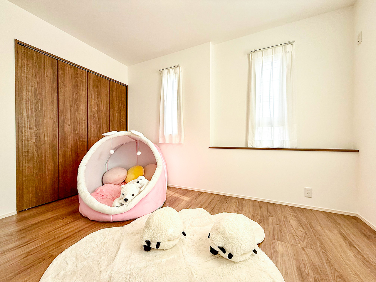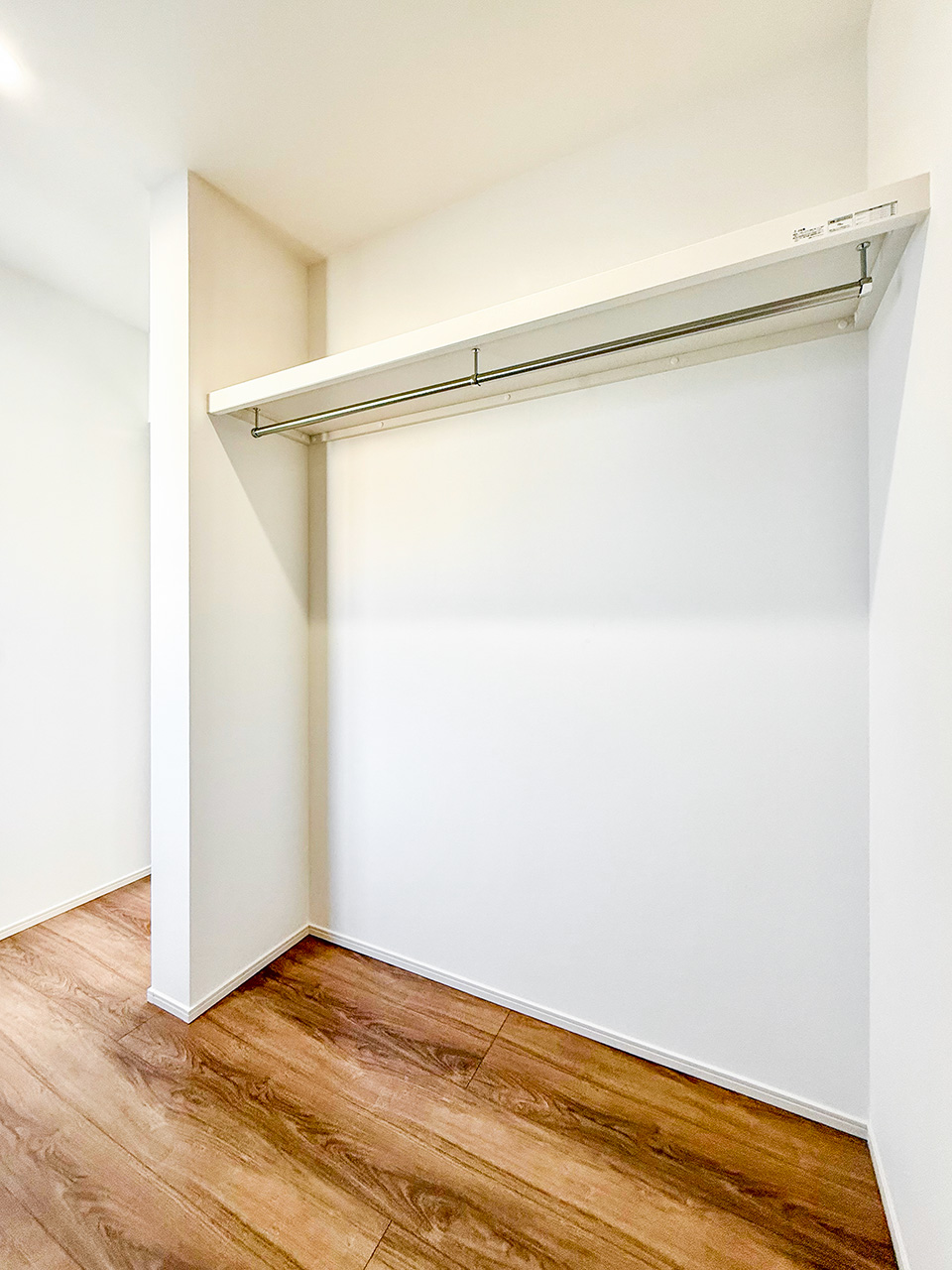 ご夫婦や子ども達の衣類をたっぷりしまえる大容量のウォークインクローゼット。季節の衣類から鞄や帽子などの小物までたっぷり保管可能。ウォークインタイプなので衣類の出し入れや整理整頓もスムーズに行えます。