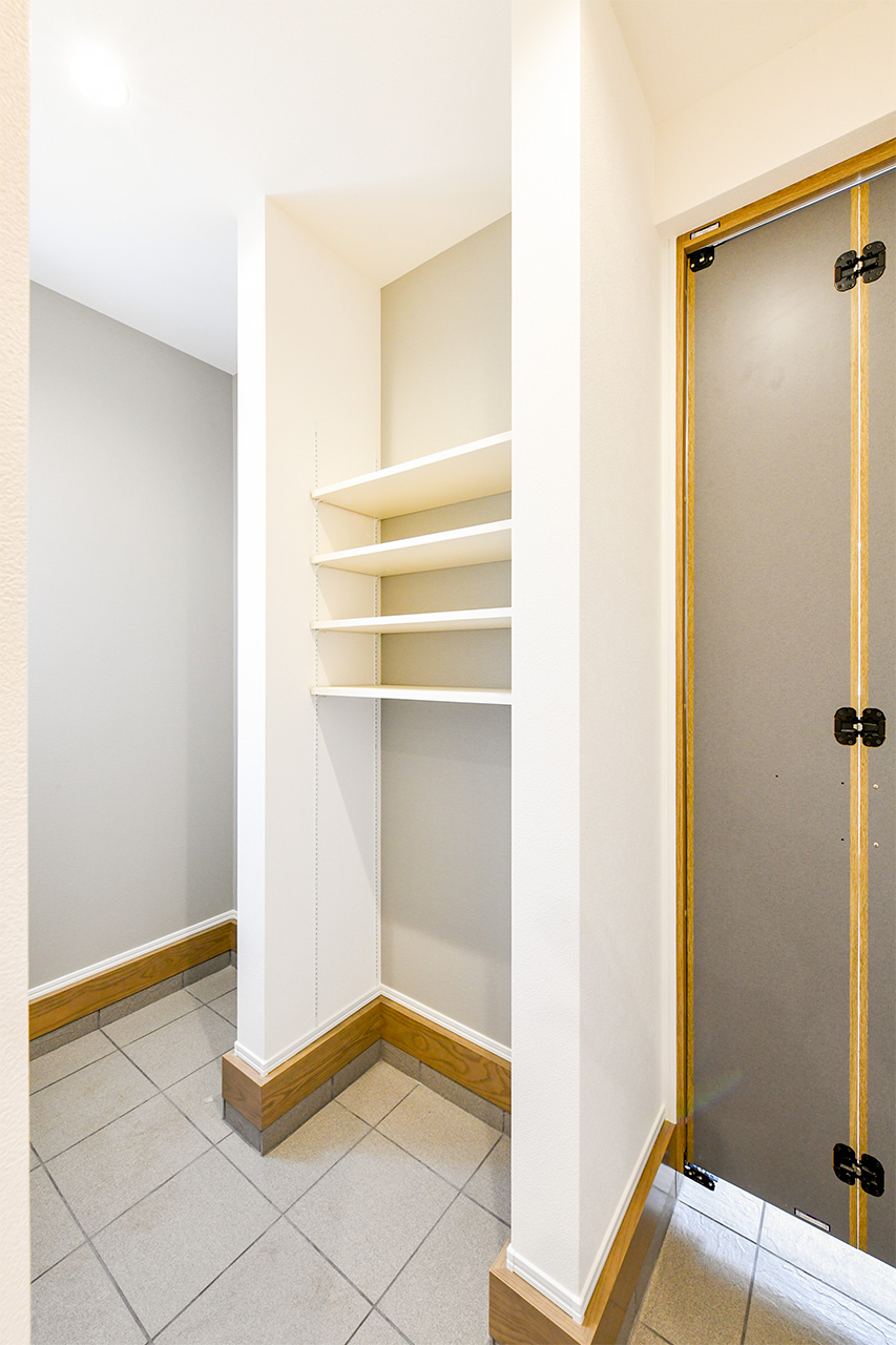 家族の分だけ必要な靴や傘は、玄関を我が物顔で占領しがちなアイテム。靴のまま出入りできるシューズクロークなら外で使う物もしっかり収納!また、玄関先は防災グッズの収納にも最適。もしもの時もすぐに持ち出すことが出来ます。