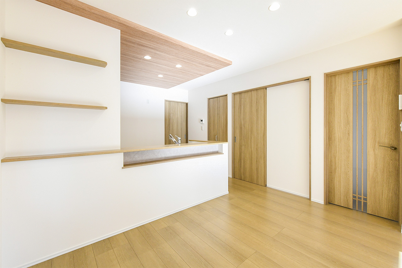 1階・2階のホールやリビングのそばに、用途やライフスタイルに合わせて自由にお使いいただける大容量の収納スペースをご用意しました。季節の衣類から鞄などの小物まで、たっぷりまとめて収納できます。