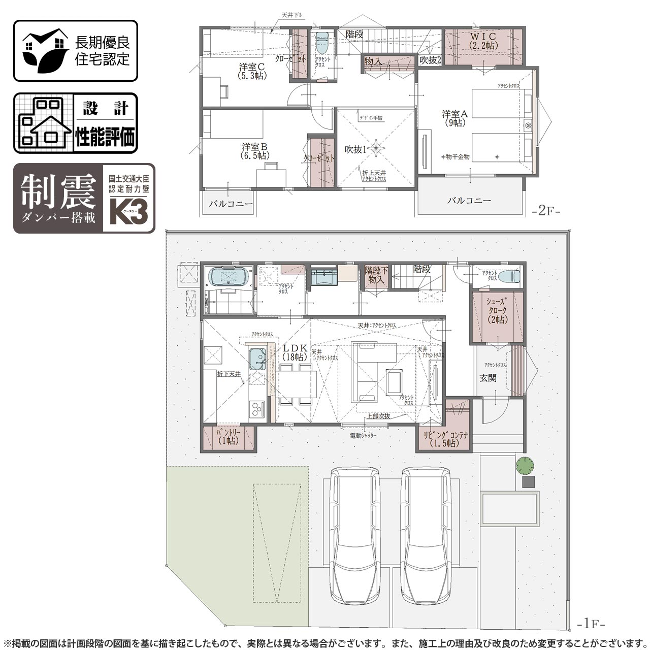 通勤やレジャーなど、ライフスタイルを広げてくれるカースペースを2台分確保しました。来客用の駐車スペースとしても最適です。