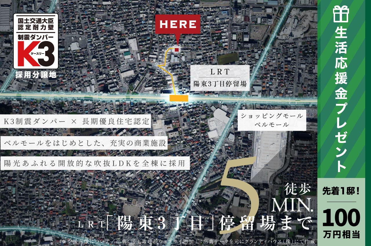 LRT「陽東3丁目」停留場まで徒歩5分