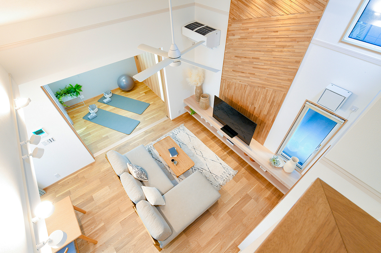 季節や天候に左右されにくい室内物干しスペース「コモレビ空間」