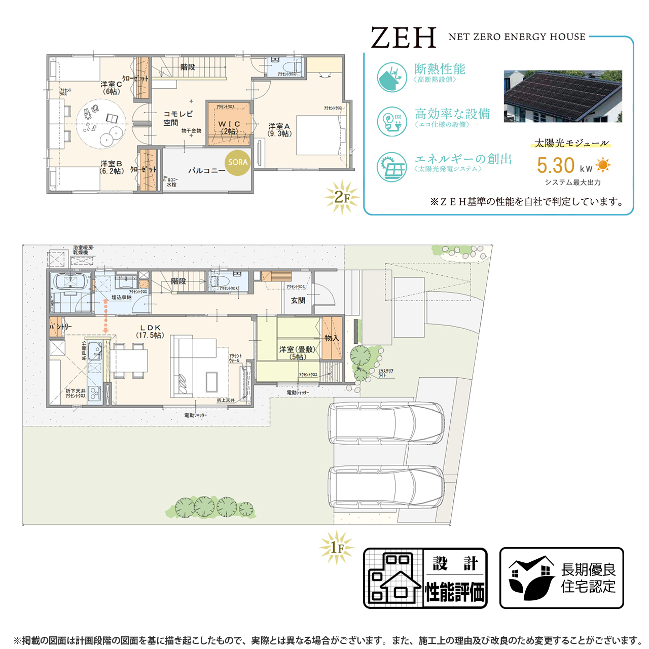 通勤やレジャーなど、ライフスタイルを広げてくれるカースペースを2台分確保しました。来客用の駐車スペースとしても最適です。