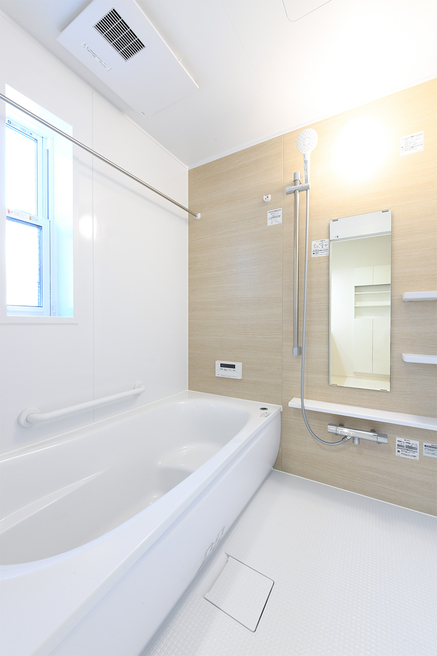 雨の日も気にせず洗濯物が浴室内に干せる浴室換気乾燥暖房機を標準装備。時間も天気も気にせず干せるからとても便利。また、浴室のジメジメした環境から発生するカビも抑えることができます。