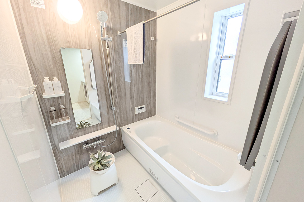 雨の日も気にせず洗濯物が浴室内に干せる浴室換気乾燥暖房機を標準装備。時間も天気も気にせず干せるからとても便利。また、浴室のジメジメした環境から発生するカビも抑えることができます。
