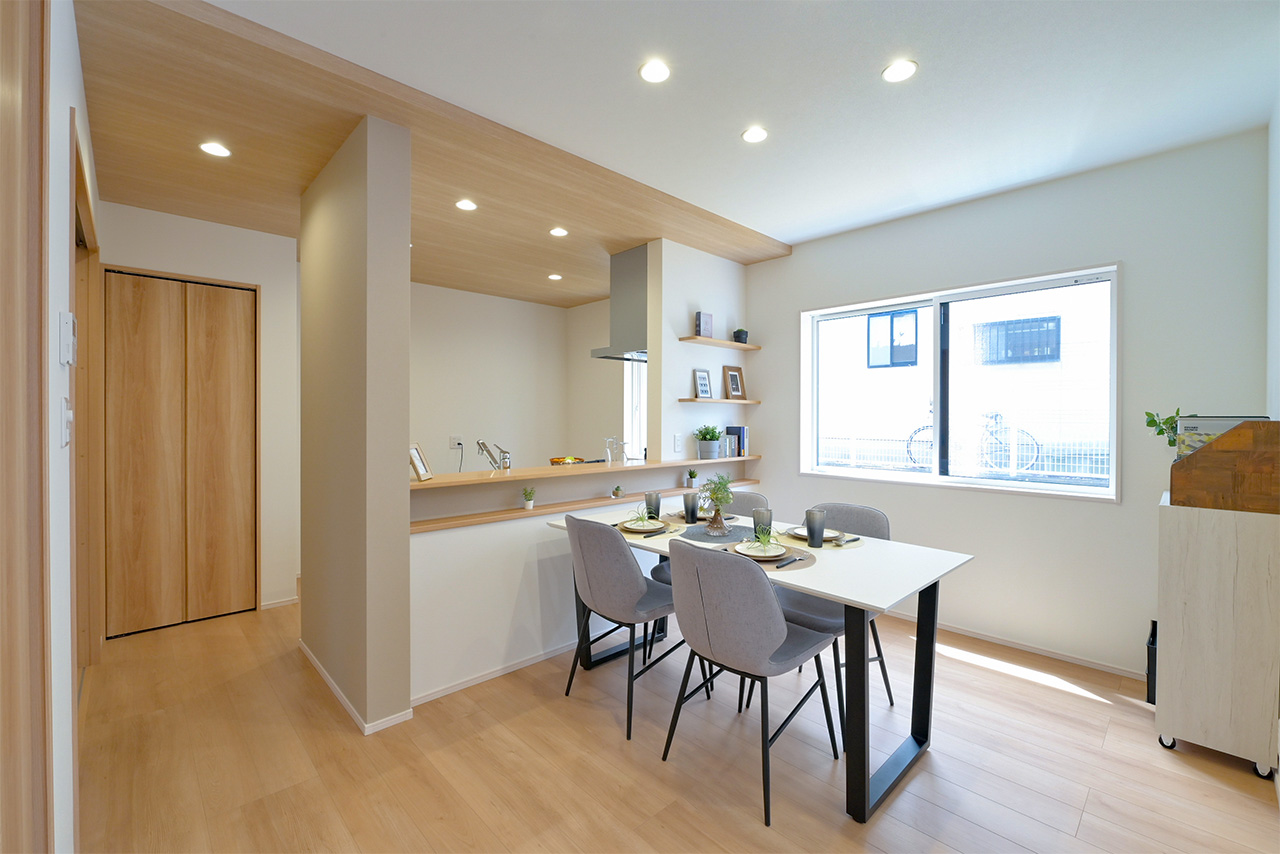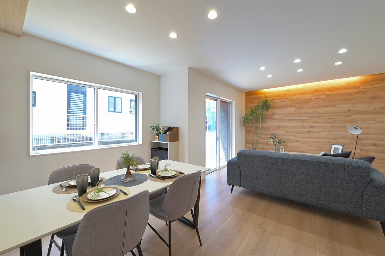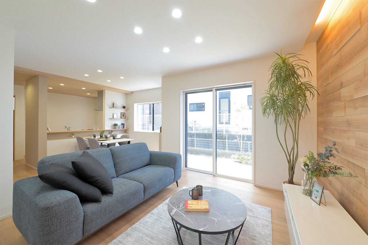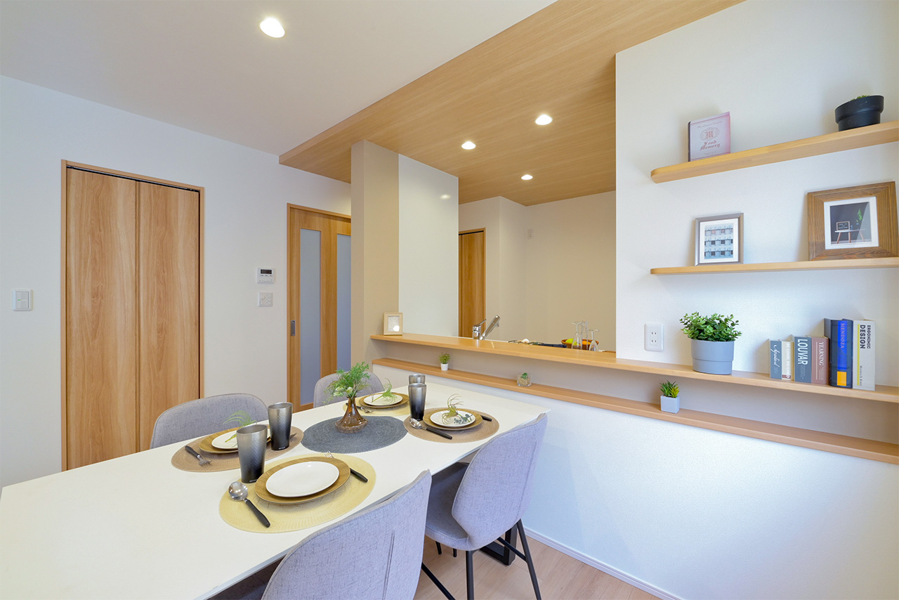 リビングそばに、家族がみんなが使いやすいたっぷり収納できるストレージをご用意。日用品や生活雑貨はもちろん、お子様のおもちゃなど、様々な収納に活用できます。日常の収納以外にも、来客時には、散らかった雑誌やおもちゃなども手早く片づける事ができます。