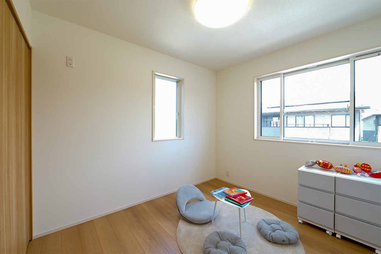 ご夫婦や子ども達の衣類をたっぷりしまえる大容量のウォークインクローゼット。季節の衣類から鞄や帽子などの小物までたっぷり保管可能。ウォークインタイプなので衣類の出し入れや整理整頓もスムーズに行えます。