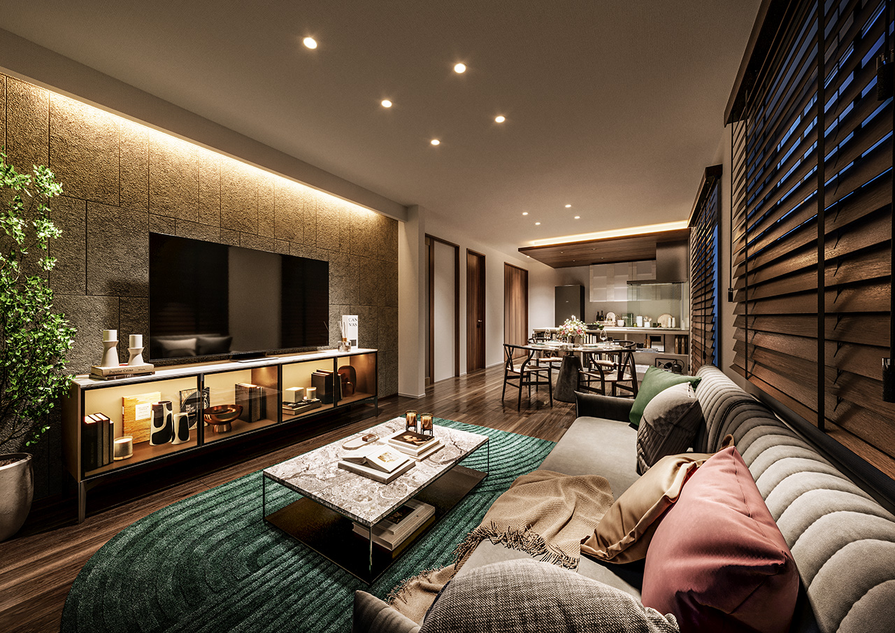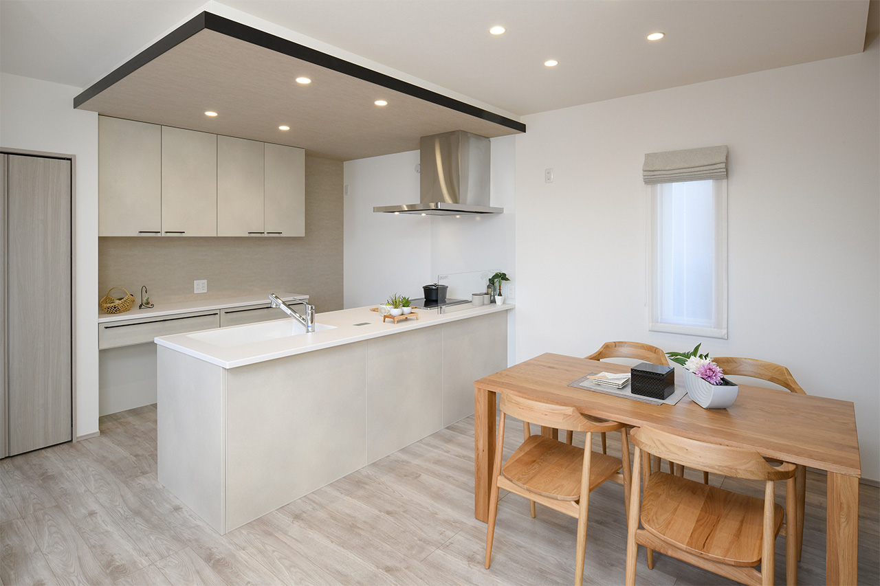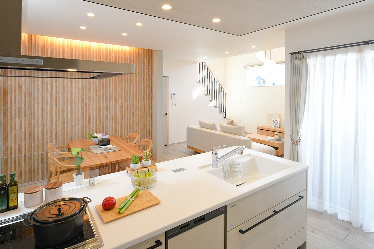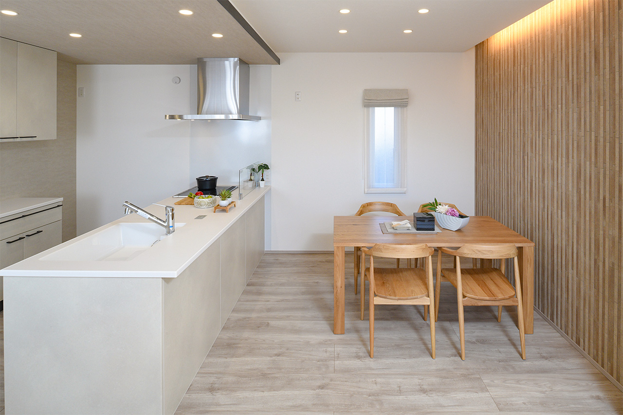 リビングという暮らしのメインスペースは、一日で家族が一番長く過ごす場所。その居心地をさらに高めるために18帖以上のワイドな広さを確保しました。広場のようなパブリックスペースがご家族の集いや団らんを心地よく育みます。