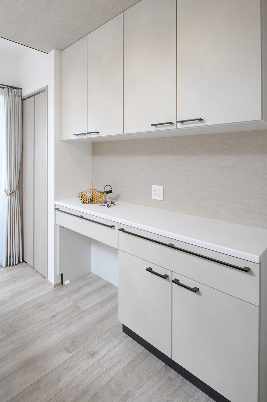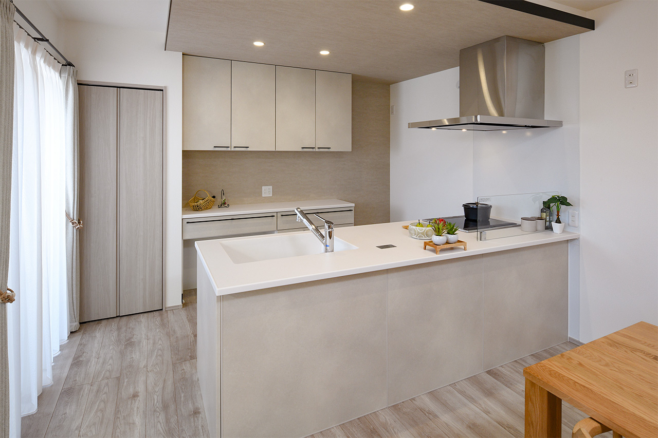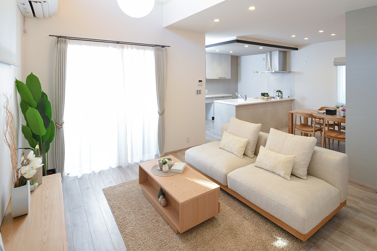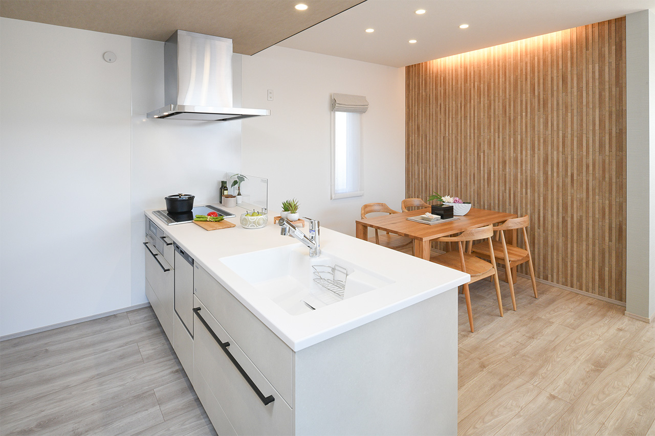 リビングという暮らしのメインスペースは、一日で家族が一番長く過ごす場所。その居心地をさらに高めるために18帖以上のワイドな広さを確保しました。広場のようなパブリックスペースがご家族の集いや団らんを心地よく育みます。