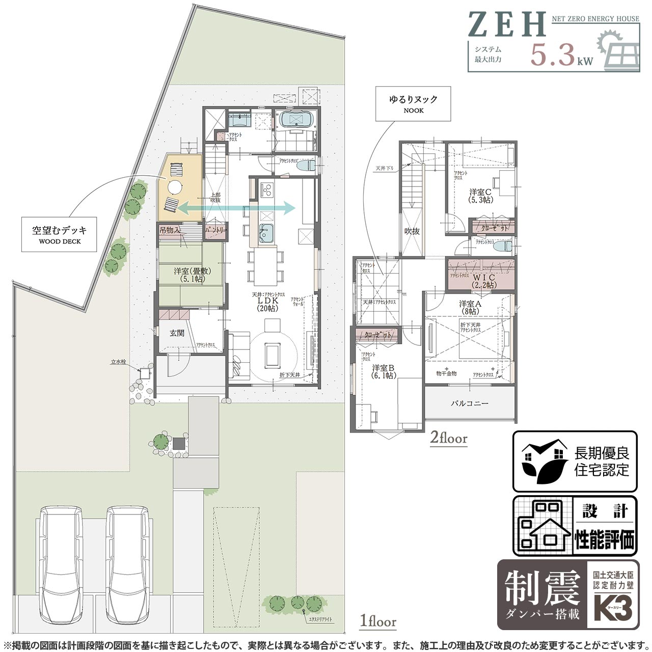 通勤やレジャーなど、ライフスタイルを広げてくれるカースペースを2台分確保しました。来客用の駐車スペースとしても最適です。