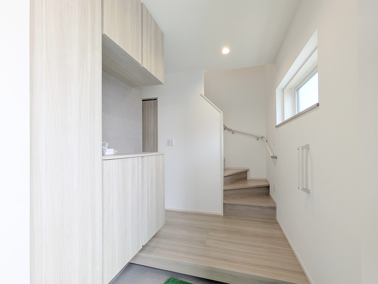 階段での転倒は思わぬけがの元となります。グランディハウスでは、ゆるやかな昇降しやすい階段とし、手すりを標準設置しています。