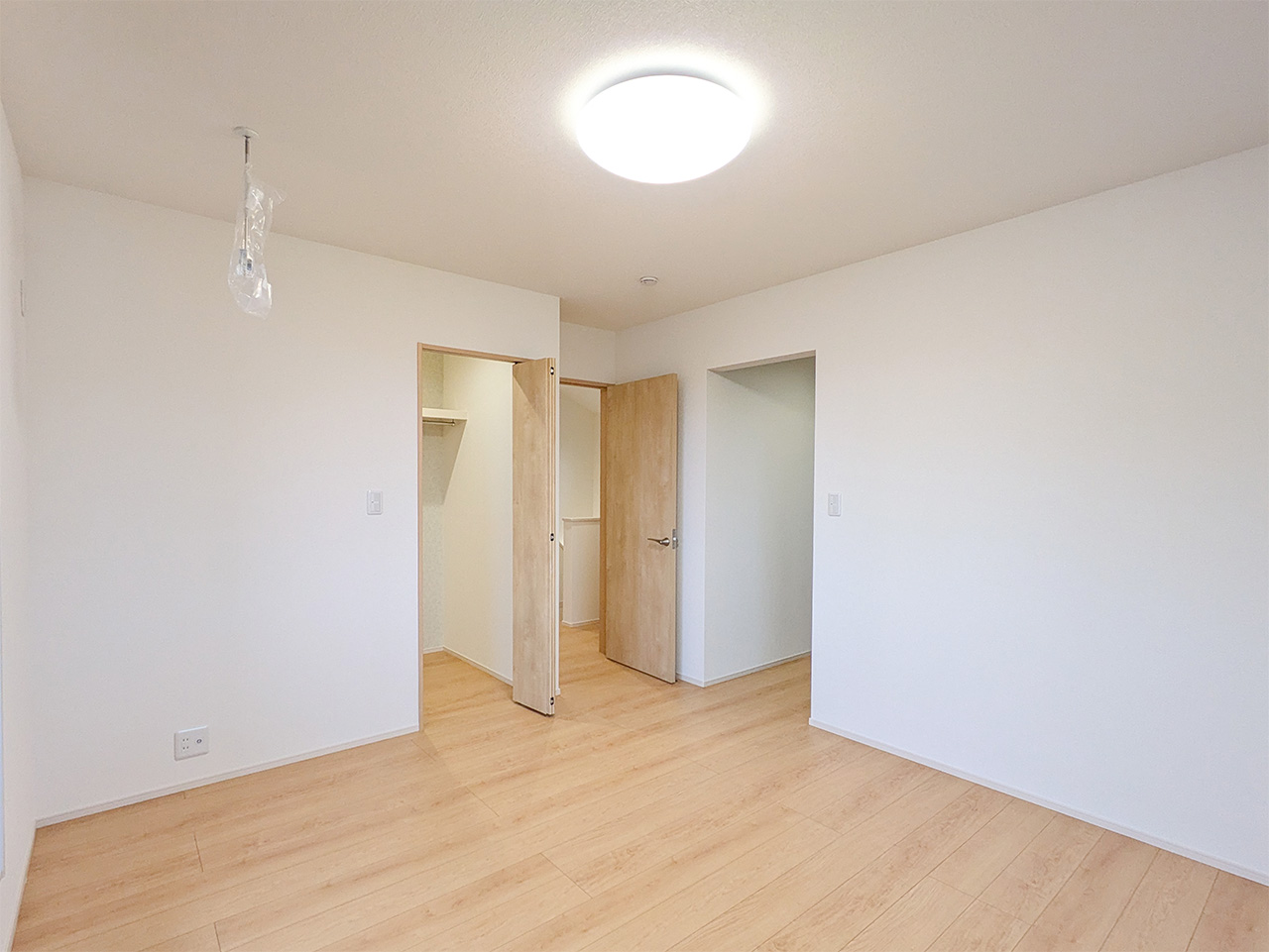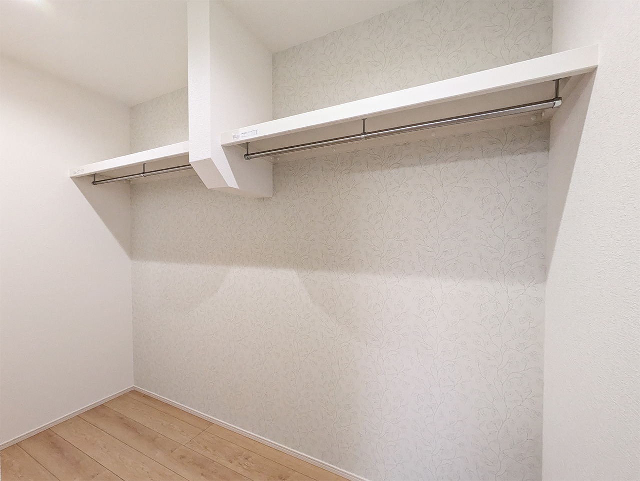 ご夫婦や子ども達の衣類をたっぷりしまえる大容量のウォークインクローゼット。季節の衣類から鞄や帽子などの小物までたっぷり保管可能。ウォークインタイプなので衣類の出し入れや整理整頓もスムーズに行えます。