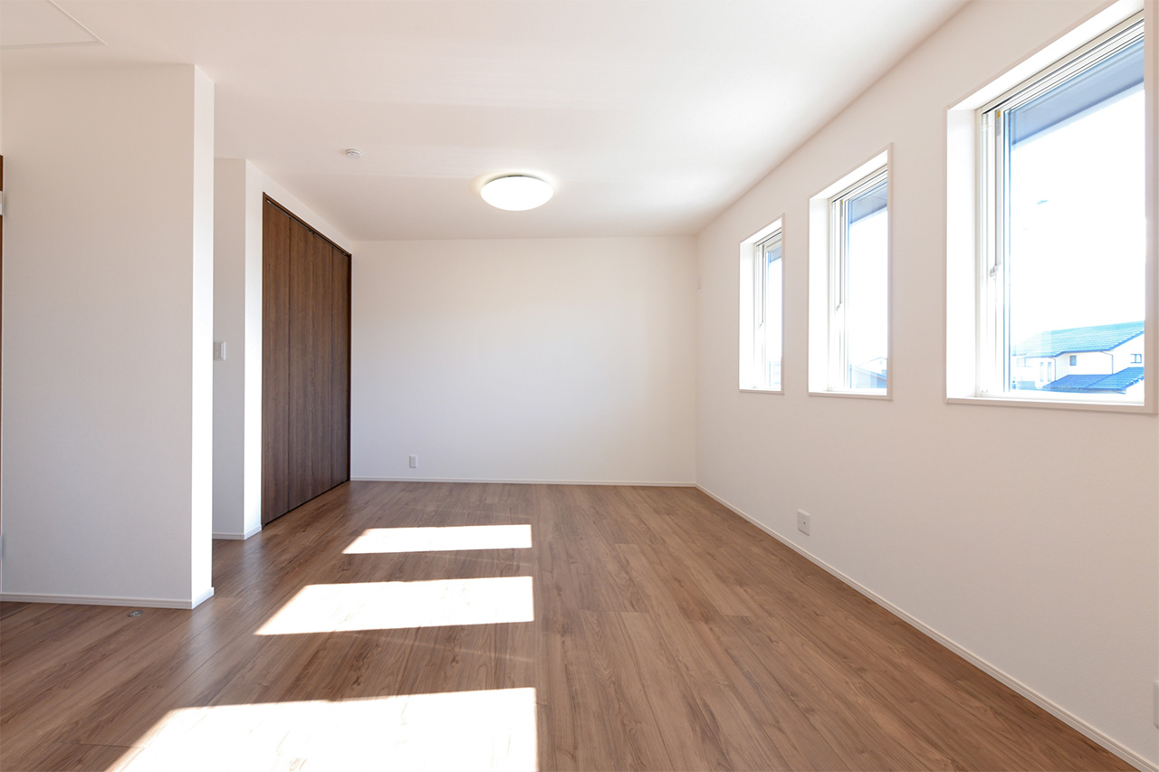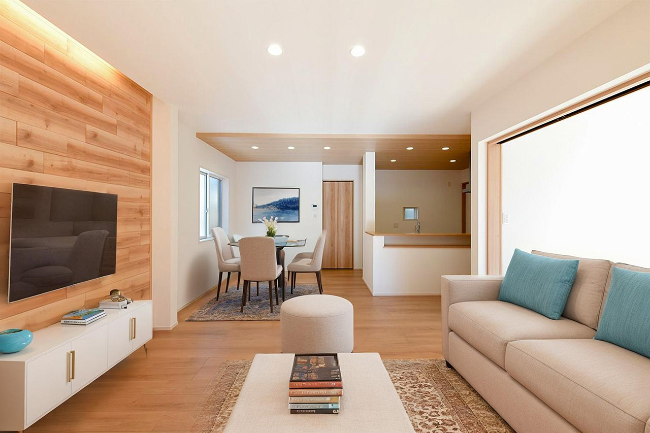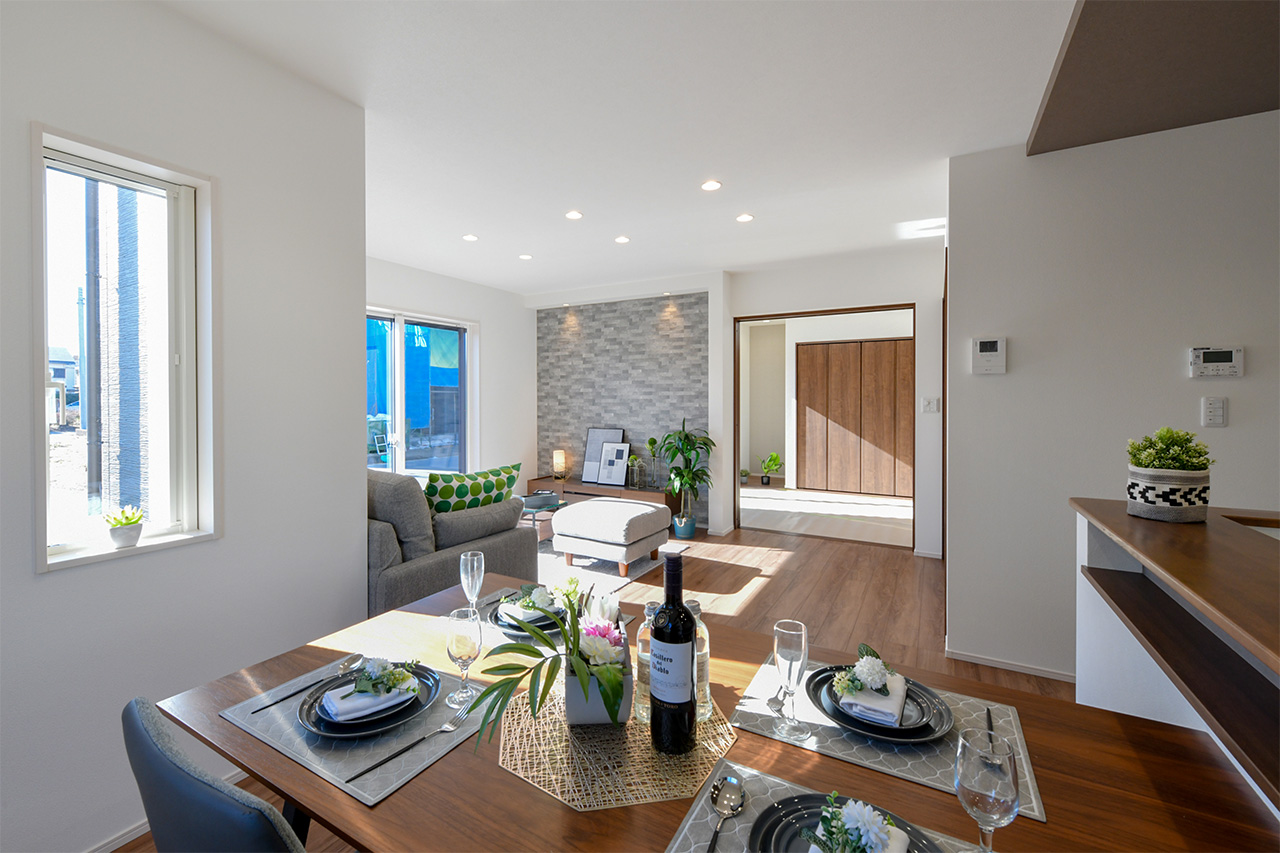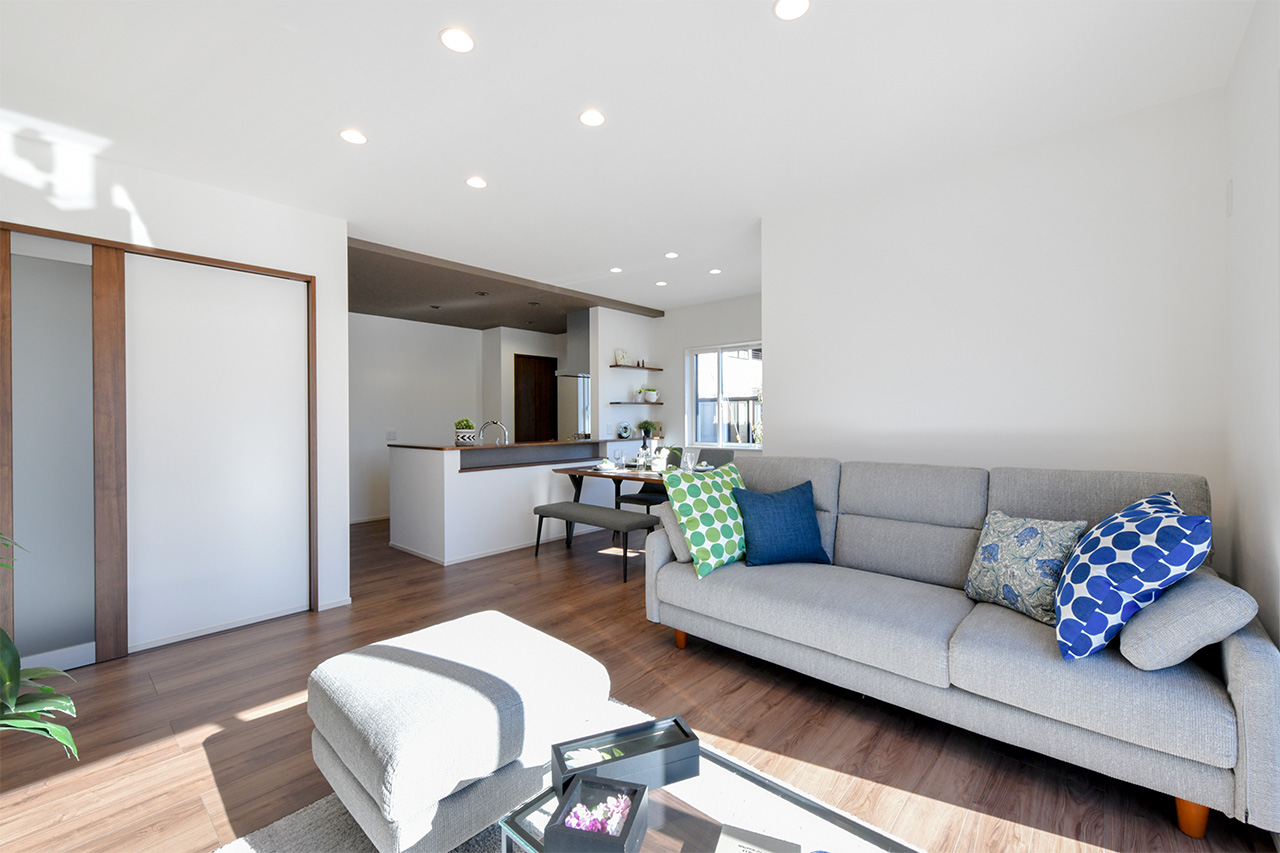 リビングという暮らしのメインスペースは、一日で家族が一番長く過ごす場所。その居心地をさらに高めるために18帖以上のワイドな広さを確保しました。広場のようなパブリックスペースがご家族の集いや団らんを心地よく育みます。