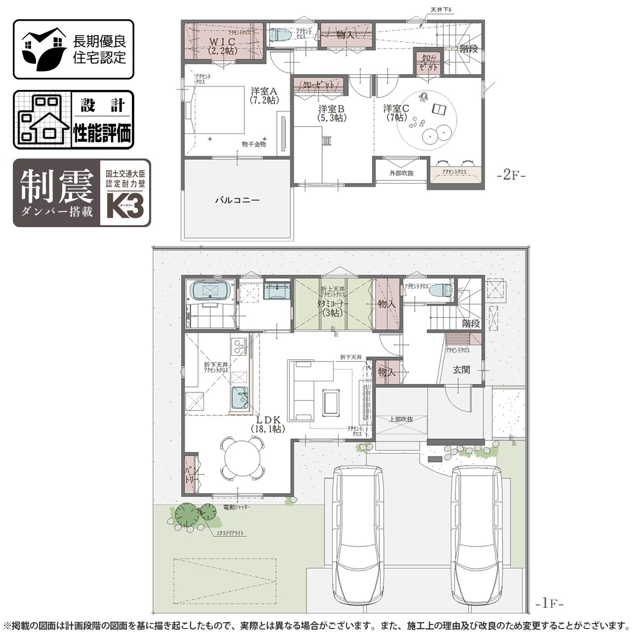 ※掲載の図面は計画段階の図面を基に描き起こしたもので、実際とは異なる場合がございます。また、施工上の理由及び改良のため変更することがございます。建売分譲住宅