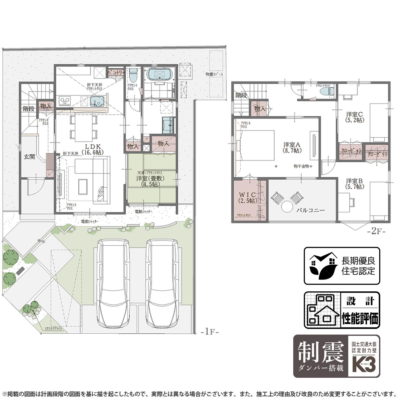 通勤やレジャーなど、ライフスタイルを広げてくれるカースペースを2台分確保しました。来客用の駐車スペースとしても最適です。