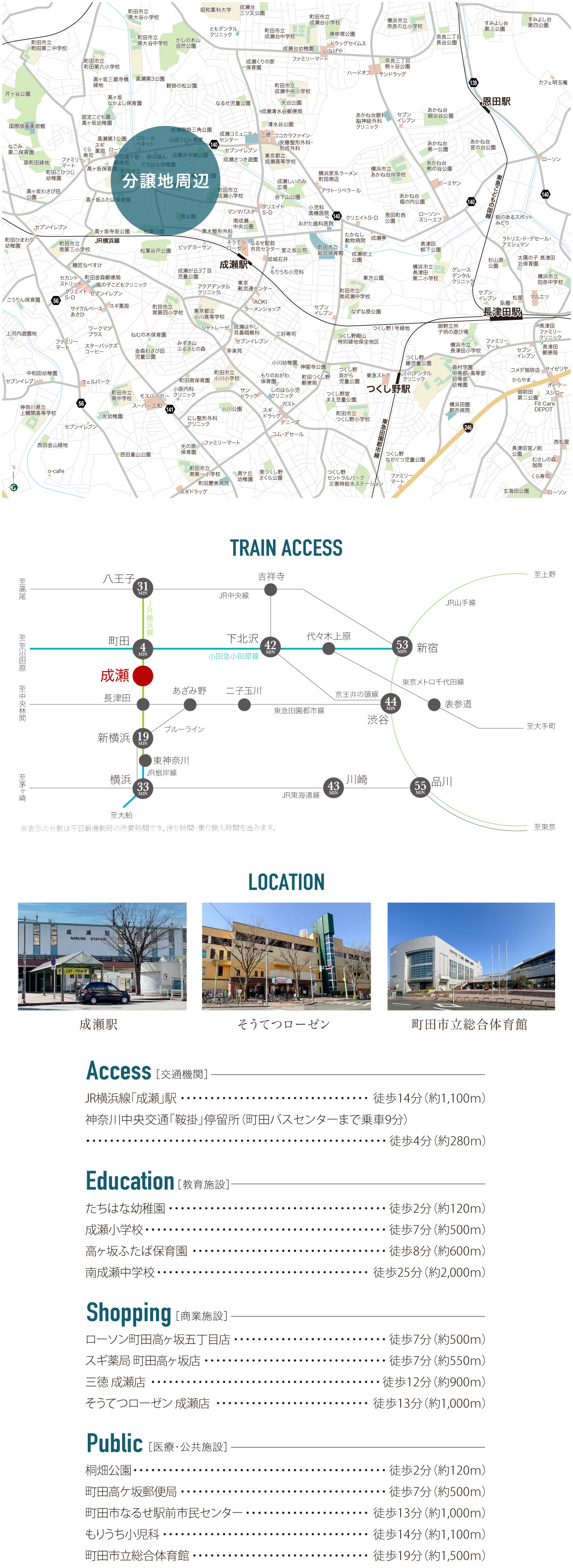 | 交通 | JR横浜線「成瀬」駅より徒歩 14分( 約1,100m ) 神奈川中央交通「鞍掛」停留所より徒歩 4分( 約280m ) |