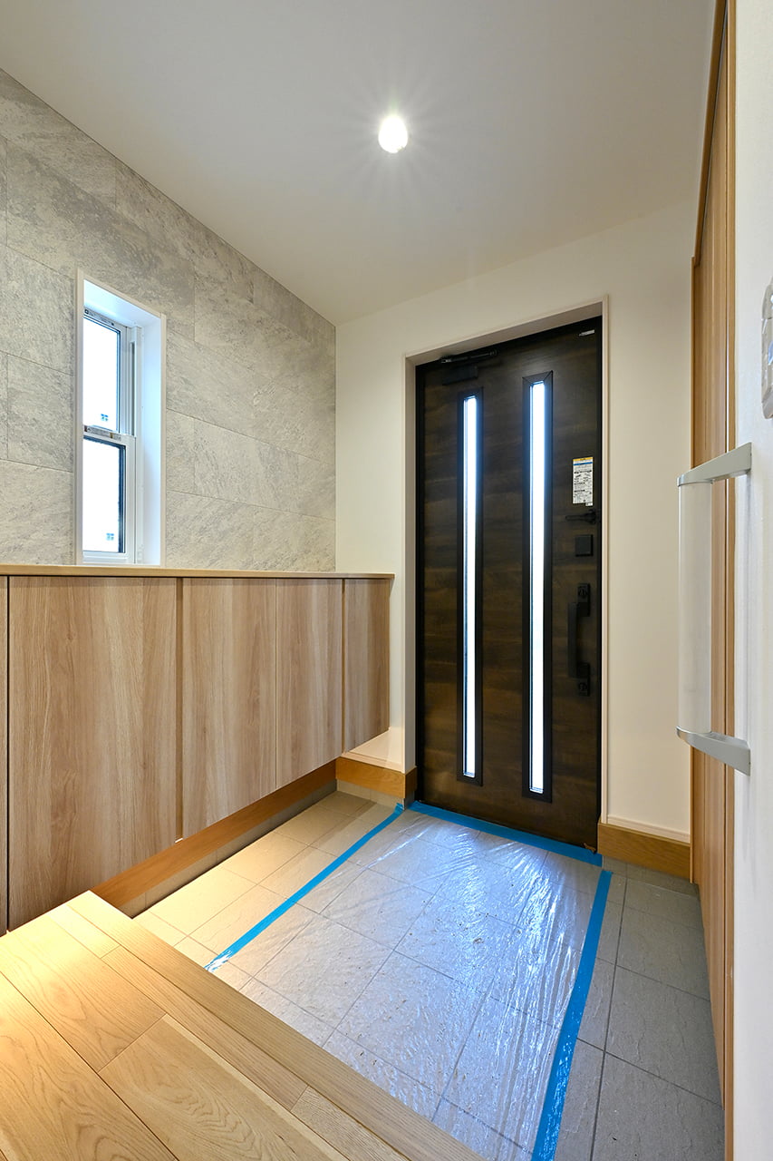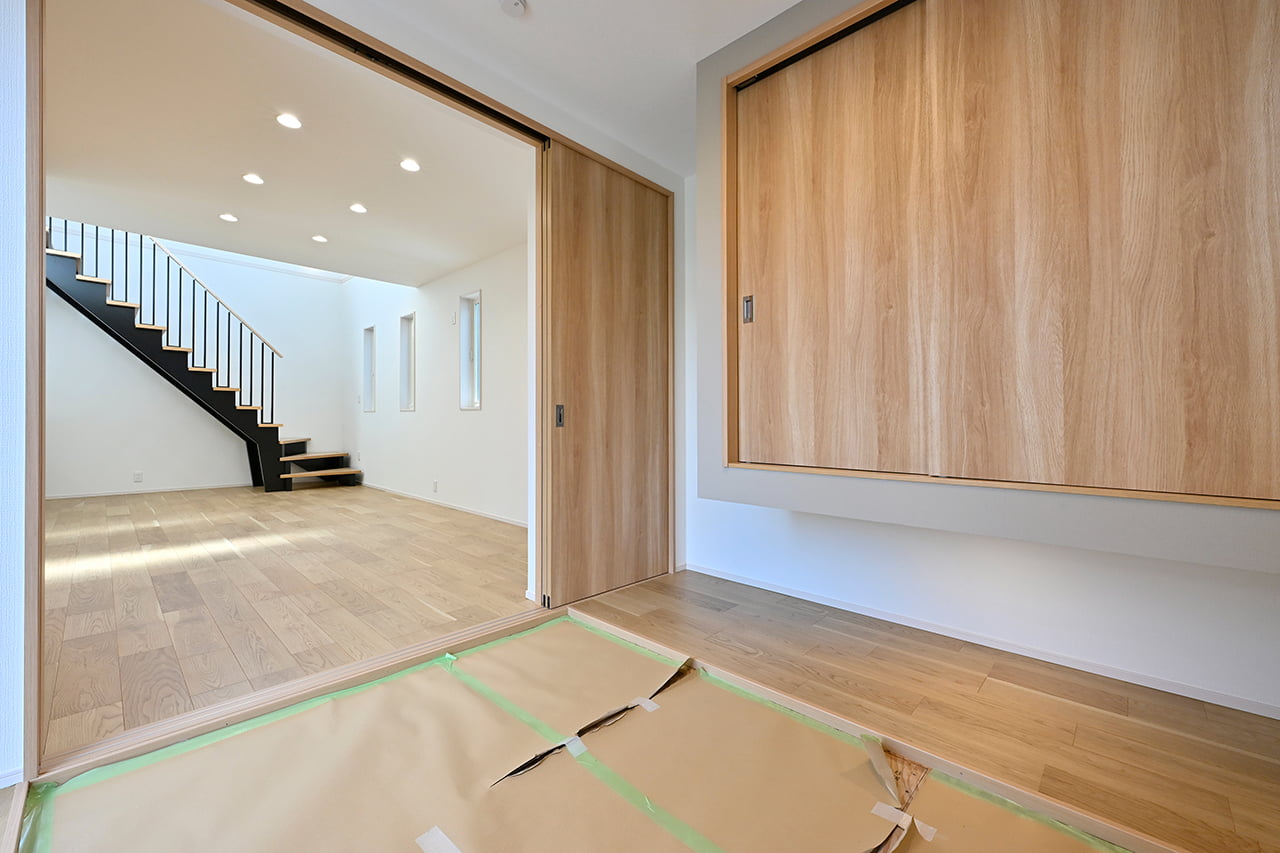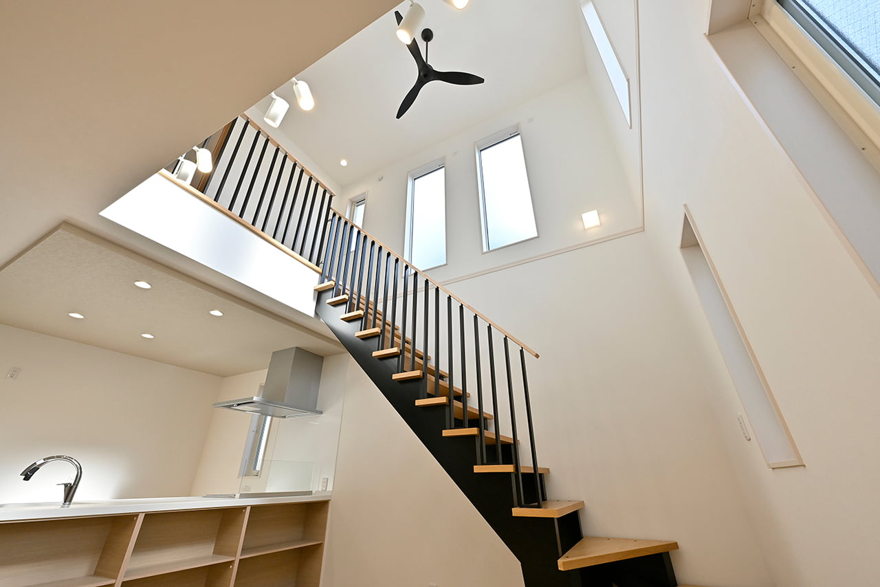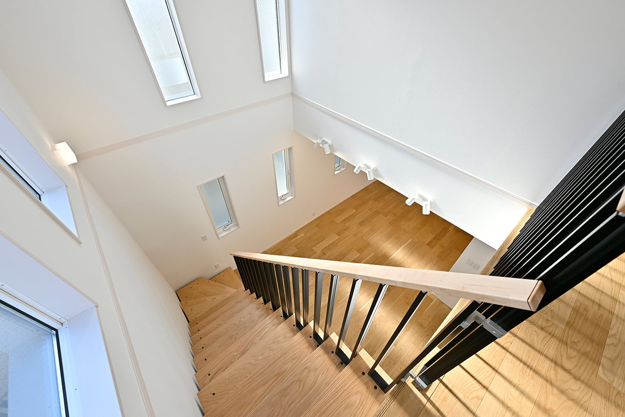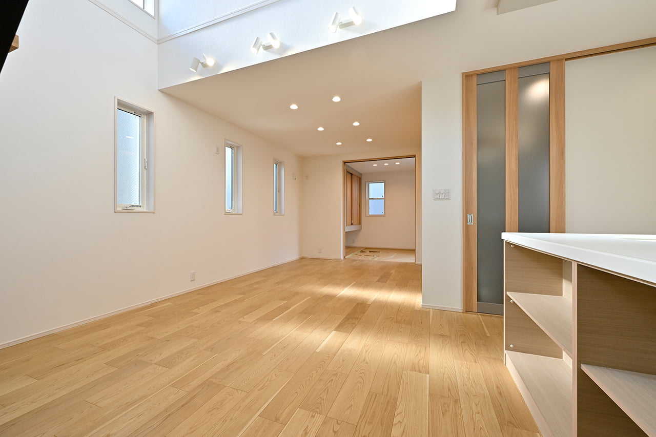 ご家族の団らんや寛ぎの中心となるリビング空間をさらに際立たせる吹抜け天井プラン。2階天井まで続くその圧倒的な存在感と広がりが訪れた方を驚きを持ってお迎えします。大切にしたいご家族やゲストをもてなす上質な空間です。