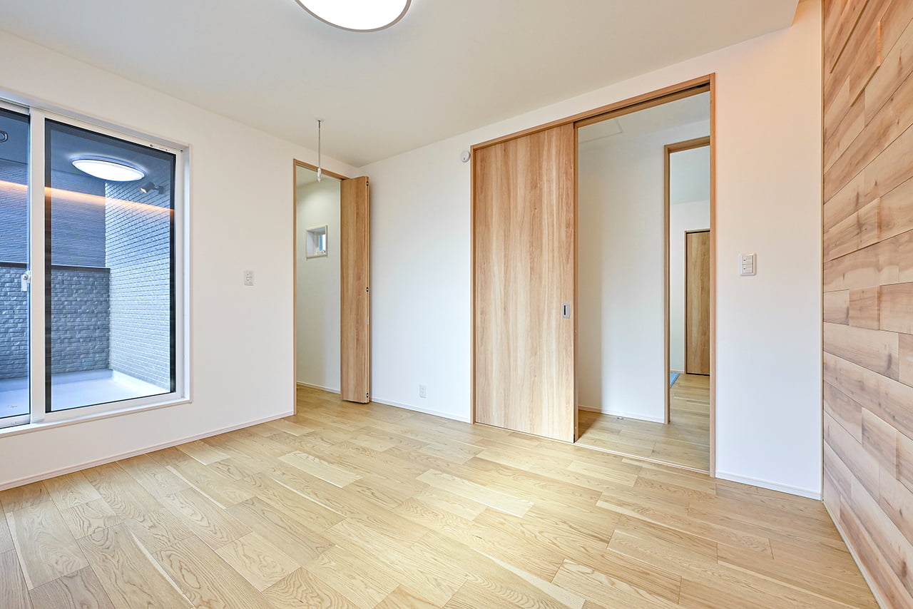 ご夫婦や子ども達の衣類をたっぷりしまえる大容量のウォークインクローゼット。季節の衣類から鞄や帽子などの小物までたっぷり保管可能。ウォークインタイプなので衣類の出し入れや整理整頓もスムーズに行えます。