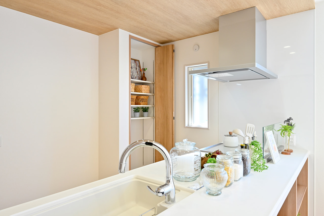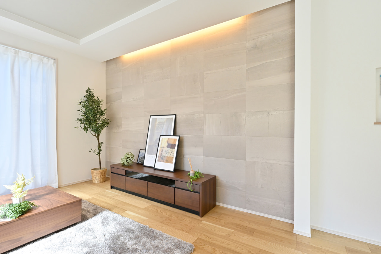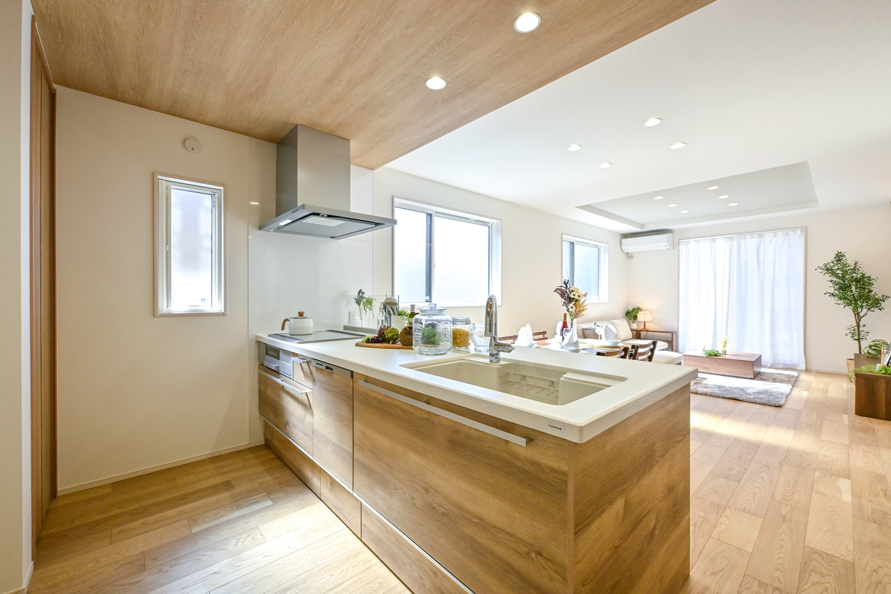 リビングやキッチンの天井に設えた間接照明。やわらかで幻想的な光の演出が、空間を落ち着いた雰囲気に包んでくれます。ご家族の特別な日のサプライズや照明を活かしたインテリアコーディネートなど暮らしに楽しさをプラス。居心地を高め、深める空間プランニングです。
