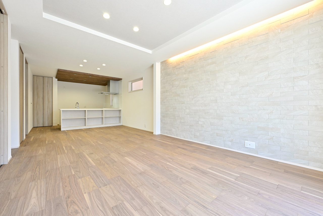 リビングという暮らしのメインスペースは、一日で家族が一番長く過ごす場所。その居心地をさらに高めるために18帖以上のワイドな広さを確保しました。広場のようなパブリックスペースがご家族の集いや団らんを心地よく育みます。