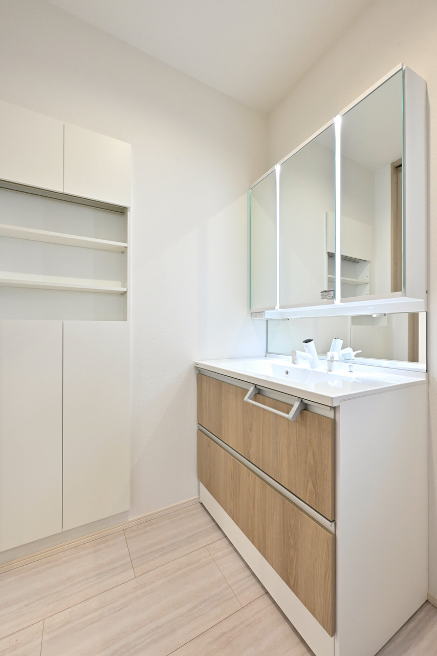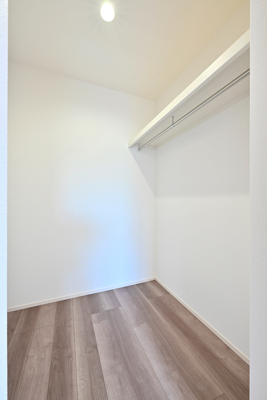 ご夫婦や子ども達の衣類をたっぷりしまえる大容量のウォークインクローゼット。季節の衣類から鞄や帽子などの小物までたっぷり保管可能。ウォークインタイプなので衣類の出し入れや整理整頓もスムーズに行えます。